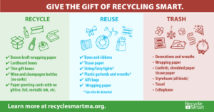 Recycle Smart This Holiday Season! Happy holiday season, Smart Recyclers! Did you know that Americans generate 23% more trash between Thanksgiving and New Year than any other